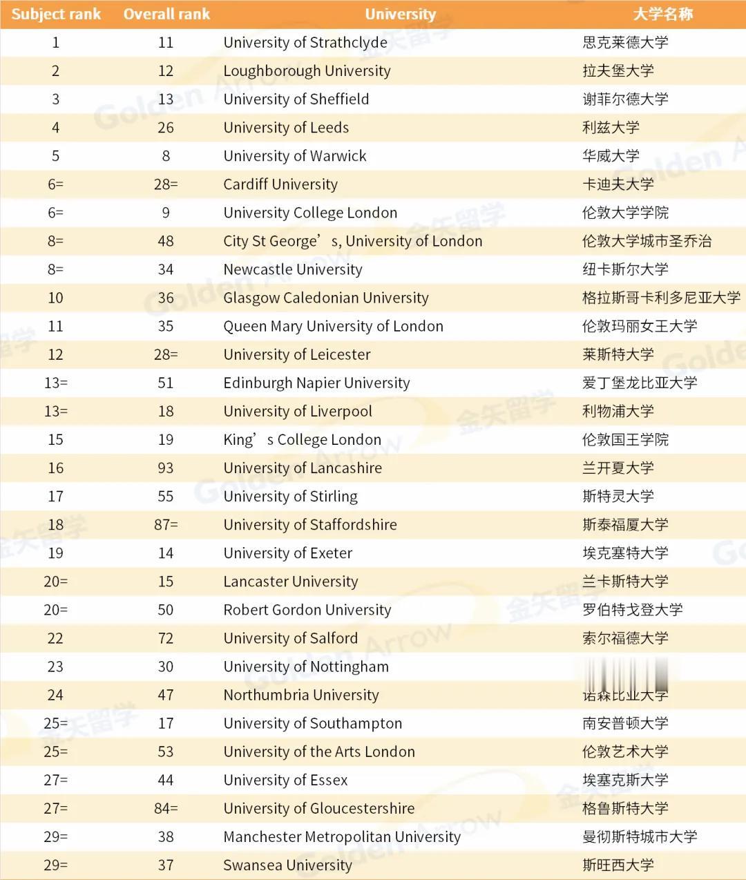 在其他高校中,布里斯托大学排名上升,成功进入前十;思克莱德大学跃升9位,位列第11名;伯明翰大学提升6位,升至第16名;邓迪大学更是大幅上升13位,排名第23。