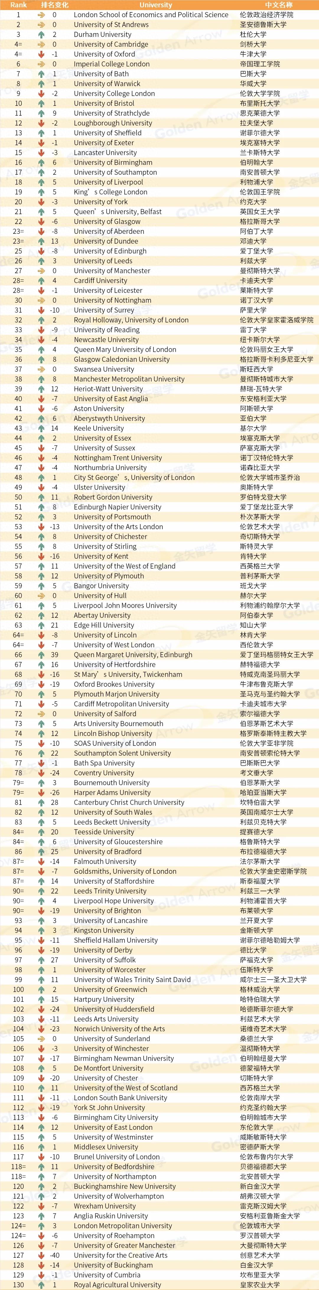最新结果显示,伦敦政治经济学院(LSE)蝉联榜首,圣安德鲁斯大学继续稳居第2位。杜伦大学表现突出,历史上首次超越牛津大学和剑桥大学,跻身前三。牛津大学则下降一位,与剑桥大学并列第4。