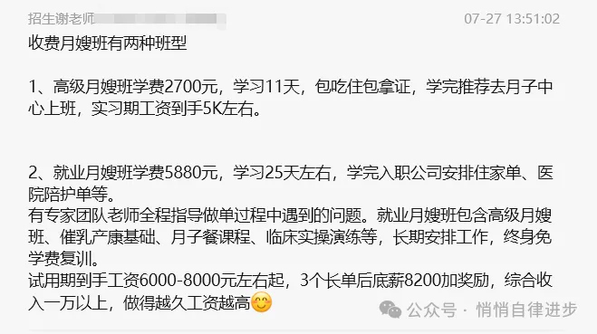 等单期间原来的床位不够的话还要2个人一个床位,在学校包吃住还好一点,但是没收入压力很大。我是报的月嫂班,只能安排到月子中心,不需要办理入职那些,就很自由,自己直接回家等。
