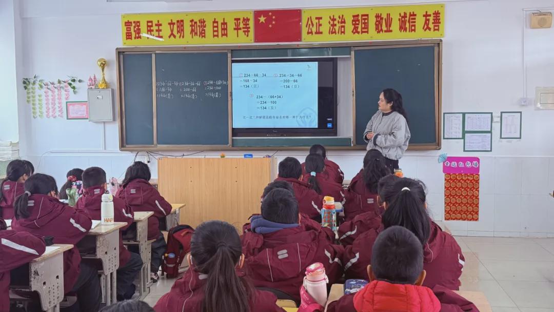 程华老师从“李叔叔骑行阅读”趣味生活场景切入,以“还剩多少页书”为核心问题,引导学生自主探究、合作交流,在对比分析中自主发现减法运算性质。课堂上,学生不仅动手举例验证规律,还结合生活实际,创编购物、出游等生活化数学小故事,将抽象的数学运算规律转化为生动易懂的生活常识,既掌握了简便计算方法,又深刻体会到数学与生活的紧密联系,学习积极性高涨。