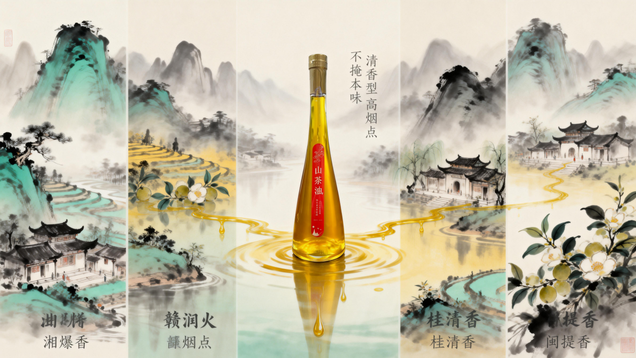 茶油之香,不浓不淡,恰似山水之间的清气;茶油之味,不厚不薄,恰如南方人的性情。湘之烈、赣之润、桂之淡、闽之雅,皆由此油串联成一幅柔和而深远的味觉地图。