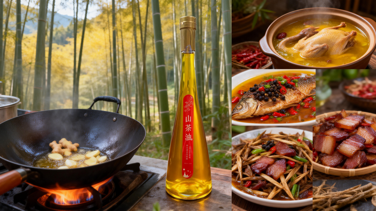 从地域美食的角度看,山茶油不仅提供了烹饪的“脂质基础”,更塑造了“味觉哲学”——那是一种“以平为美、以润为德”的饮食观。它让南方饮食体系呈现出清、香、淡、和的独特气韵,也让人们在一匙油香中,嗅到千年山林的呼吸与文化的温度。