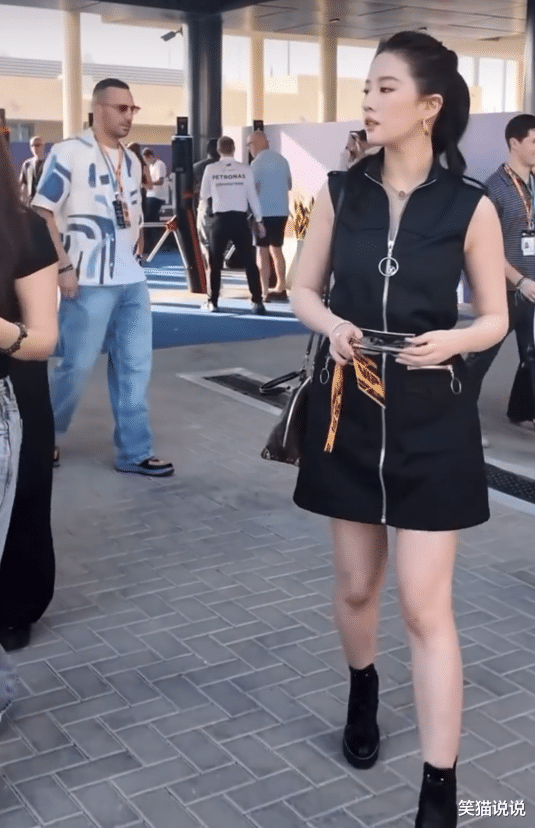 刘亦菲受邀出席阿布扎比F1赛场活动。在活动现场中,刘亦菲穿着黑色的无袖连衣短裙,搭配黑色的小短靴,秀出超长的笔直大长腿,。多了几分火辣的风格。黑色的连衣裙衬托得刘亦菲原本白皙的皮肤更加白皙了,可以说是白到发光的程度了。刘亦菲束着高马尾的发型,佩戴着墨镜,看起来酷劲十足,十分酷飒,还多了几分帅气感。