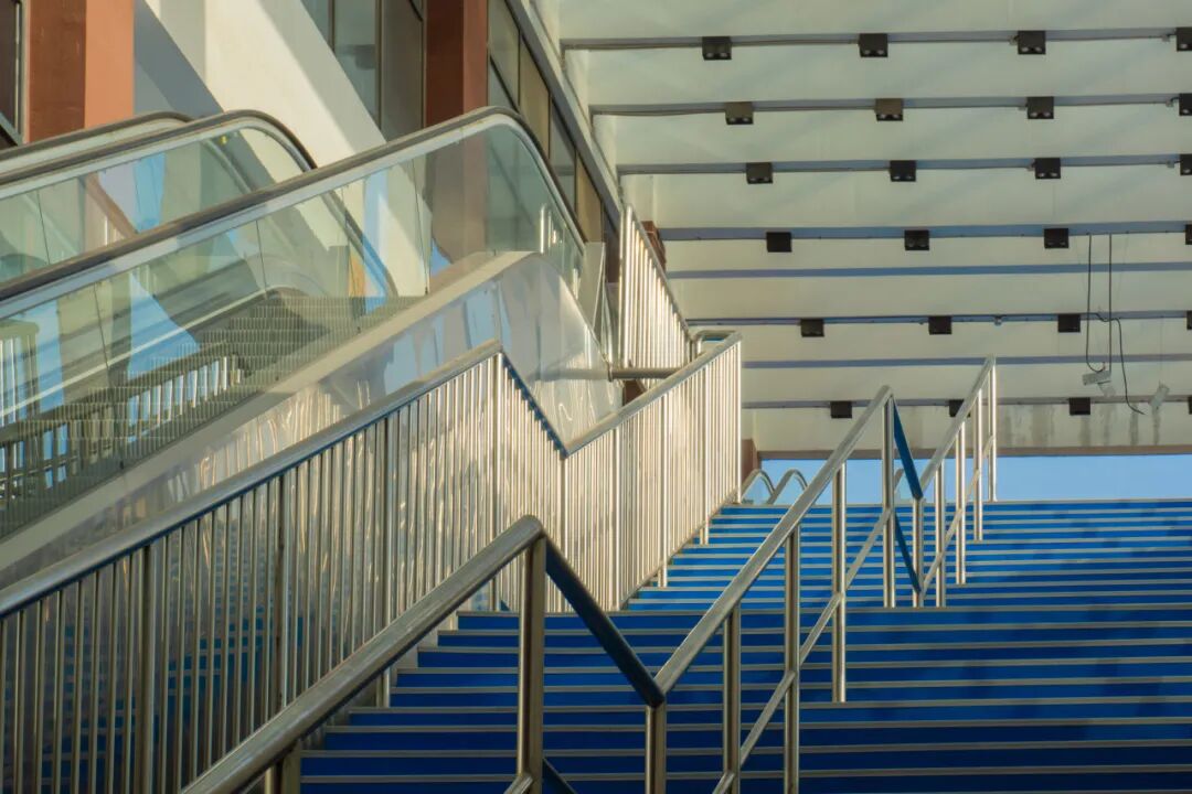 在走廊地面拓印出菱形光斑