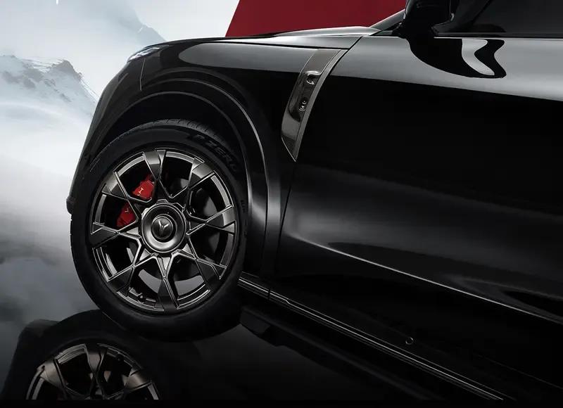 先说说这车长啥样。泰山本身就是一个大块头,长宽高分别是5230毫米、2025毫米和1817毫米,轴距达到了3120毫米,是个标准的大型SUV身材。黑武士版,顾名思义,主打一个“黑化”风格。它用了专属的玄墨车漆,前脸那个被称为“玄镜万象”的格栅也做了全镜面高光黑化处理,配上熏黑的轮圈和里面若隐若现的红色刹车卡钳,看起来确实比普通版更酷、更有运动感。官方说这个设计理念叫“藏锋”,想体现一种内敛的东方美学。