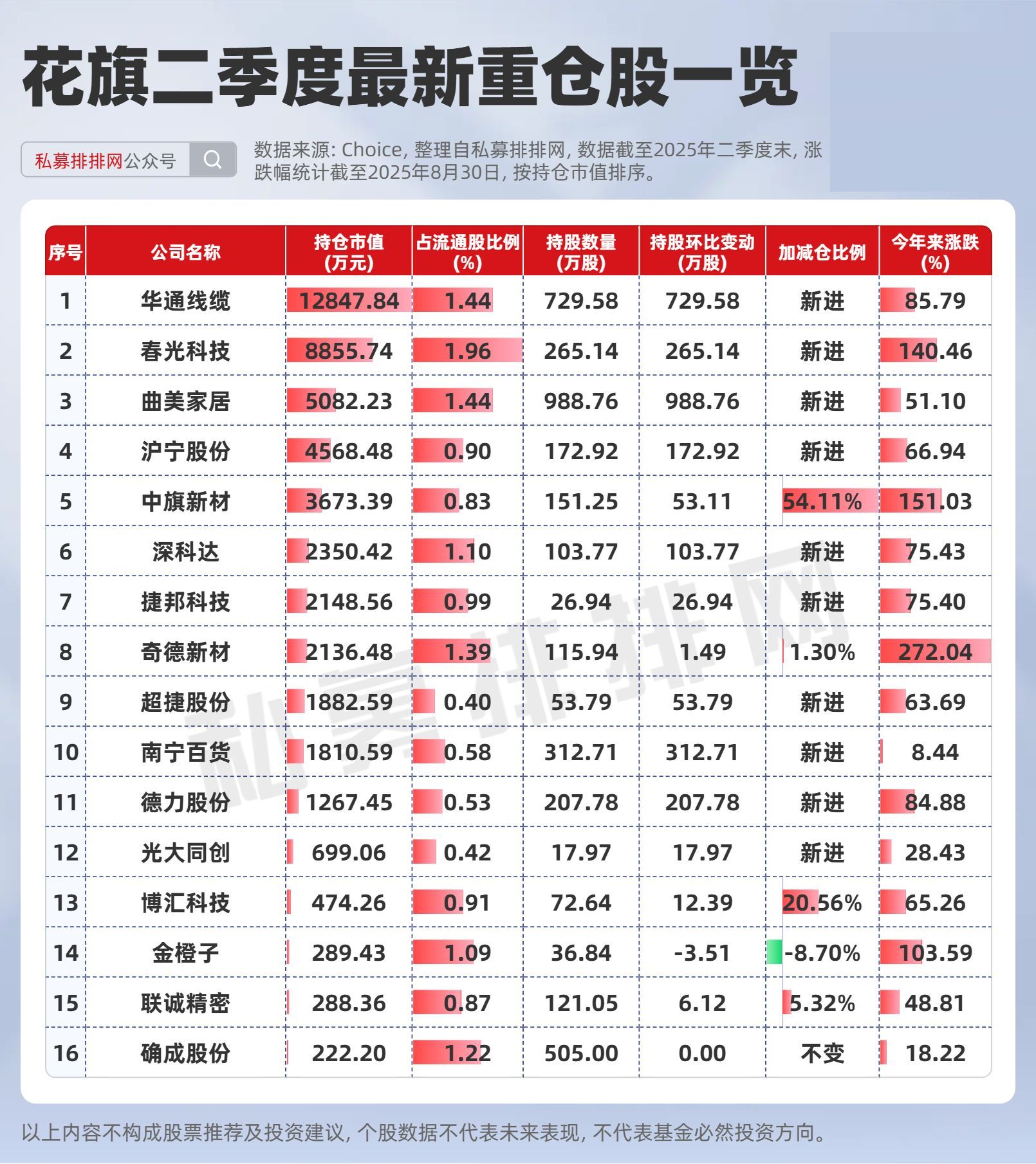 第一大重仓股是华通线缆,二季度花旗最新建仓729.58万股,占公司流通股比例的1.44%,位居第8大流通股东,持有市值约为1.28亿元,公司今年来涨幅高达85.79%,二季度末以来上涨34.12%,预计带来浮盈约为4367.36万元。