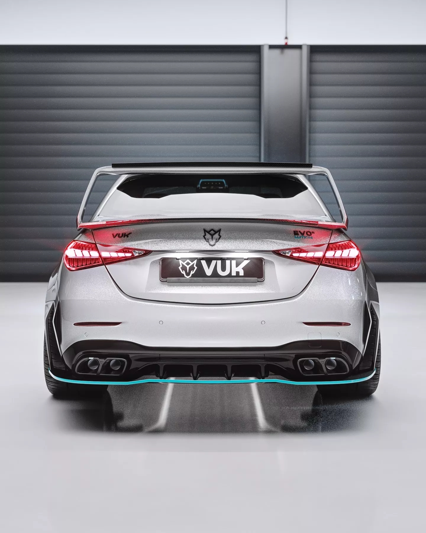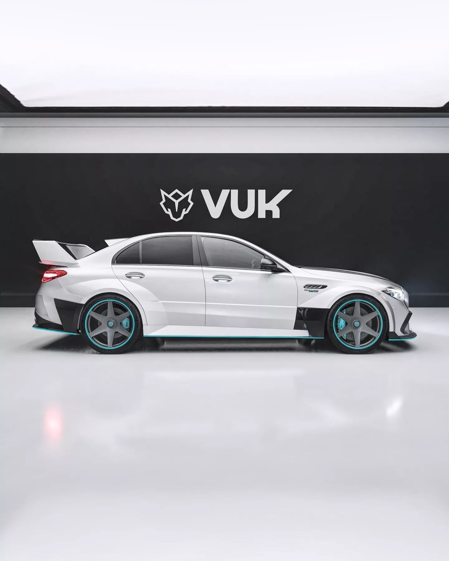 C 63 S 的后尾门上加装了一个巨大的尾翼,其设计风格或许会让 Black Series 的“臭鼬工厂”团队感到自豪。Vuk 还为其安装了新的扩散器和定制徽章。此外,在分流器、侧裙和扩散器等部位,Vuk 还采用了几处 Petronas 色的装饰,进一步完善了视觉效果。