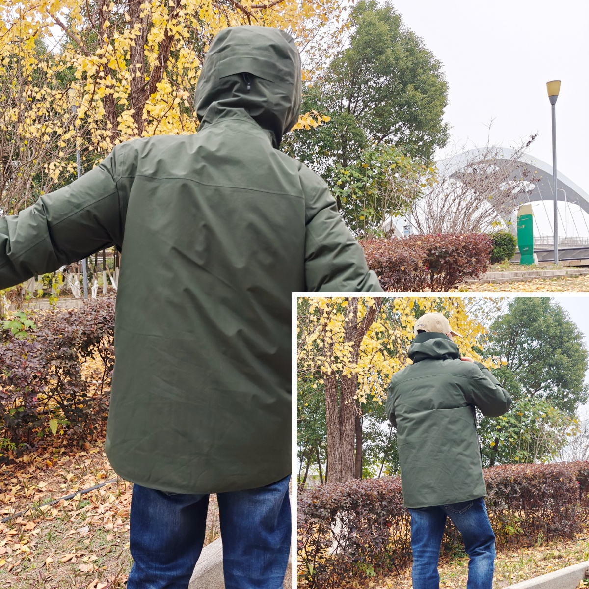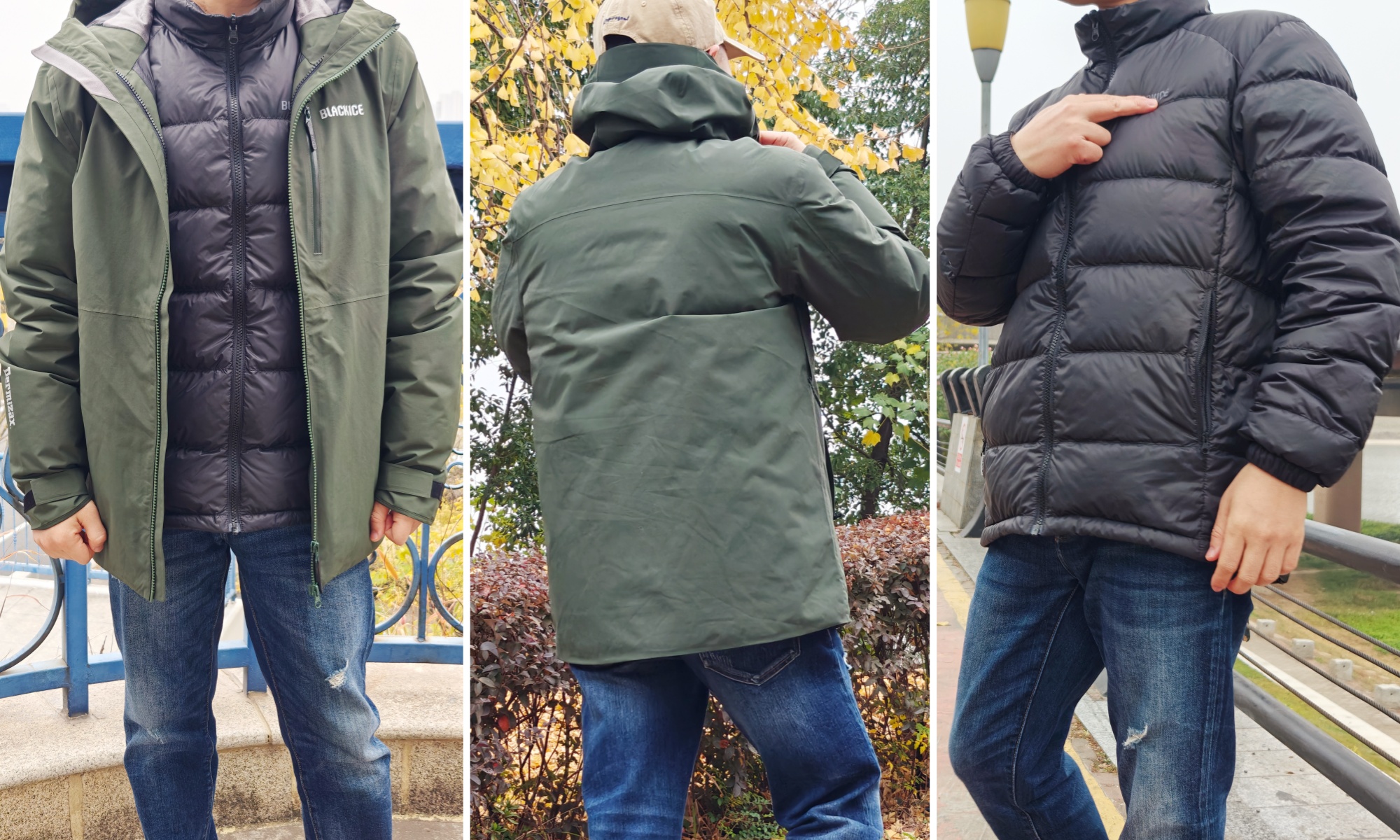 这件黑冰三合一鹅绒内胆冲锋衣,适合全天候穿着,不管城里,还是城外。