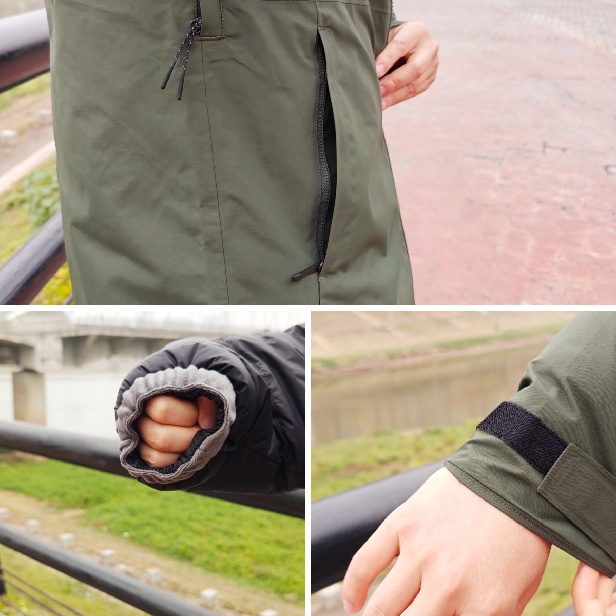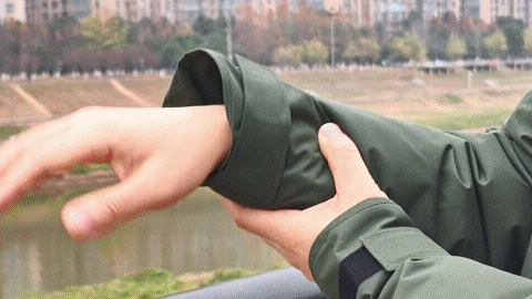 袖口、领口的植绒让穿着更随衣,袖口有魔术贴,两侧的口袋也有挡片防水,肌肤触得到的地方,不会有冷得一激灵的讨厌感觉。