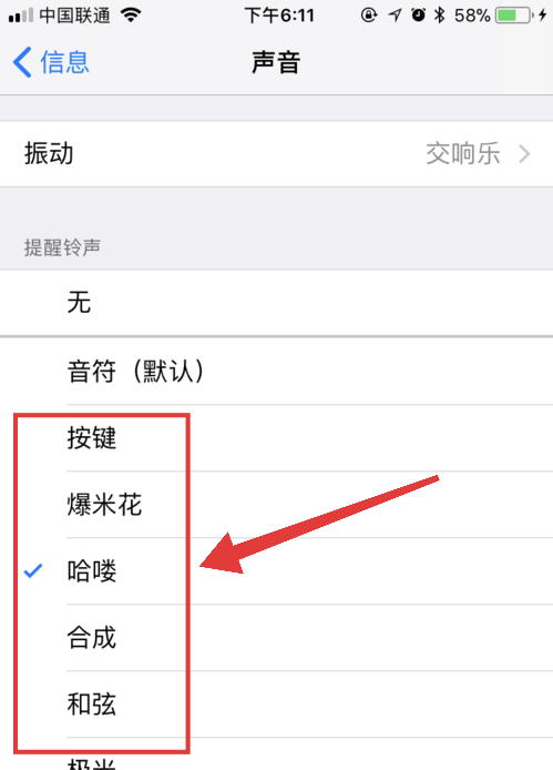 5.最后进入到声音页面后,选择自己喜欢的提示音即可。