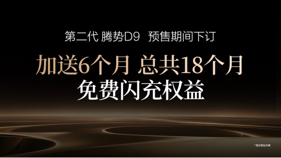 即日起下订,用户可享18个月免费闪充权益。第二代腾势D9以全面进化的产品力,满足商务与家用的多元需求,更多惊喜将于上市发布会正式揭晓。