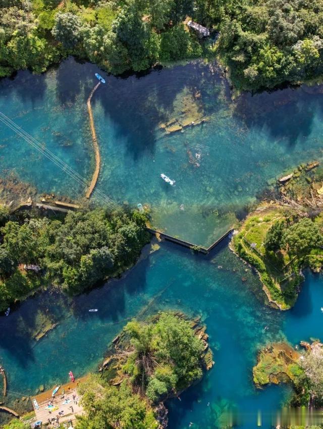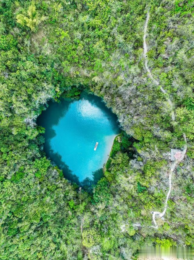 2022年,《航拍中国》第四季也来到了广西河池,对都安地下河国家地质公园进行了拍摄——“盛夏时节,看起来像海的颜色,很难不吸引人们飞身一跃”