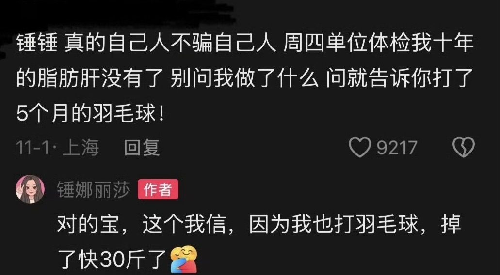 锤娜丽莎的减肥故事引发了广泛社会共鸣,她的评论区变成了健康科普阵地。有网友表示:“感谢锤姐,让我退掉三无酵素,省下888!”还有粉丝晒出自己体检报告,称受到她的影响开始关注健康。这场健康逆袭不仅改变了锤娜丽莎的身体状况,更让她成为“反容貌焦虑”的正能量典范。她用亲身经历证明:美没有标准答案,健康才是人生最贵的“奢侈品”。正如她所说:“不论胖瘦,只要健康快乐就是最好的!”