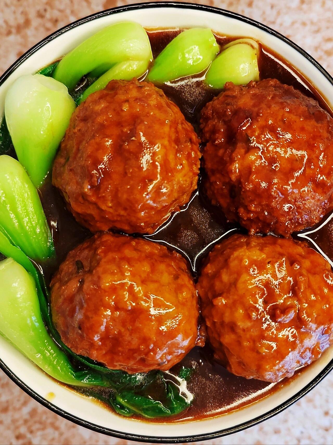 3. 四喜丸子,色香味俱全,寓意吉祥如意,适合作为主菜上桌。