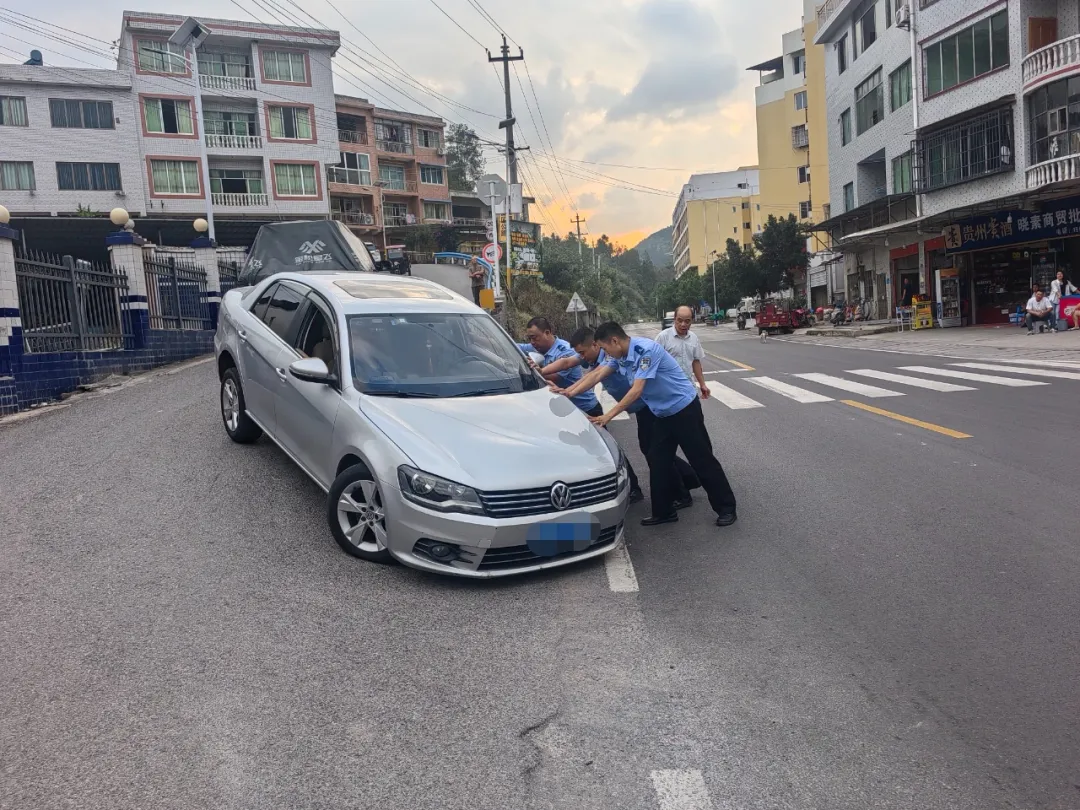 民警当即上前查看,发现车轮下陷严重,仅靠人力推无法助其脱困,随后立即联系周边车主,通过车辆拉力与人力手推结合的方式,将车辆平安拉离边沟,解决了陈先生燃眉之急。