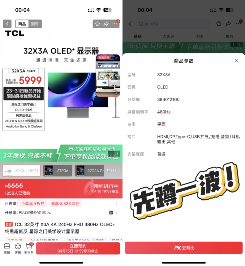 家人们,紧急插播一条电竞圈大瓜!TCL X3A OLED+电竞显示器最近直接卖爆了,线上补货直接秒没,我身边几个兄弟蹲了好几次都空手而归。看了一下配置,这显示器是真・能打,难怪会售罄!