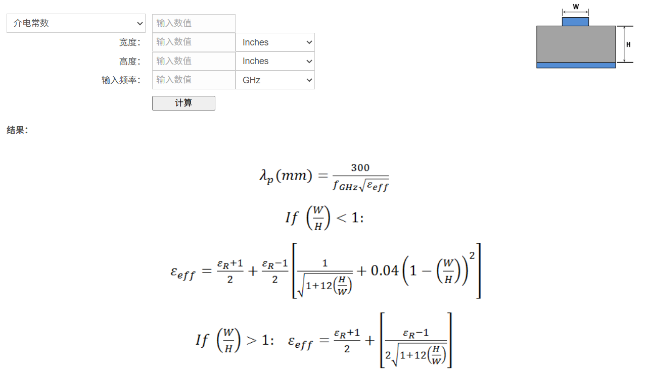 Pasternack 微带波长计算器用于查找微带内的引导波长,以及有效介电常数。