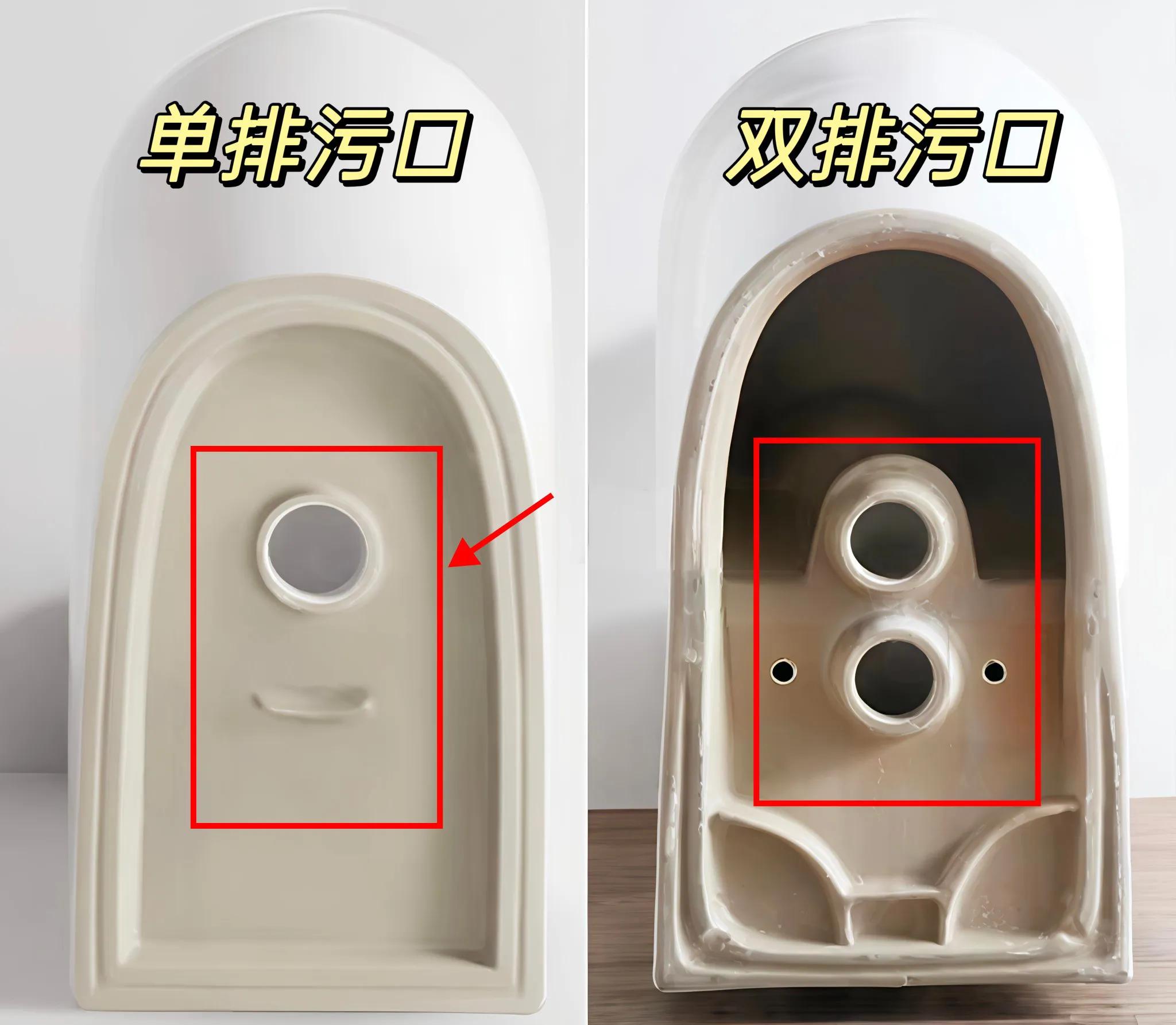 不建议选∶双排污口设计的,堵塞概率高,安装一定要精准定位才行,维修成本大,长期使用很容易反味和漏水。
