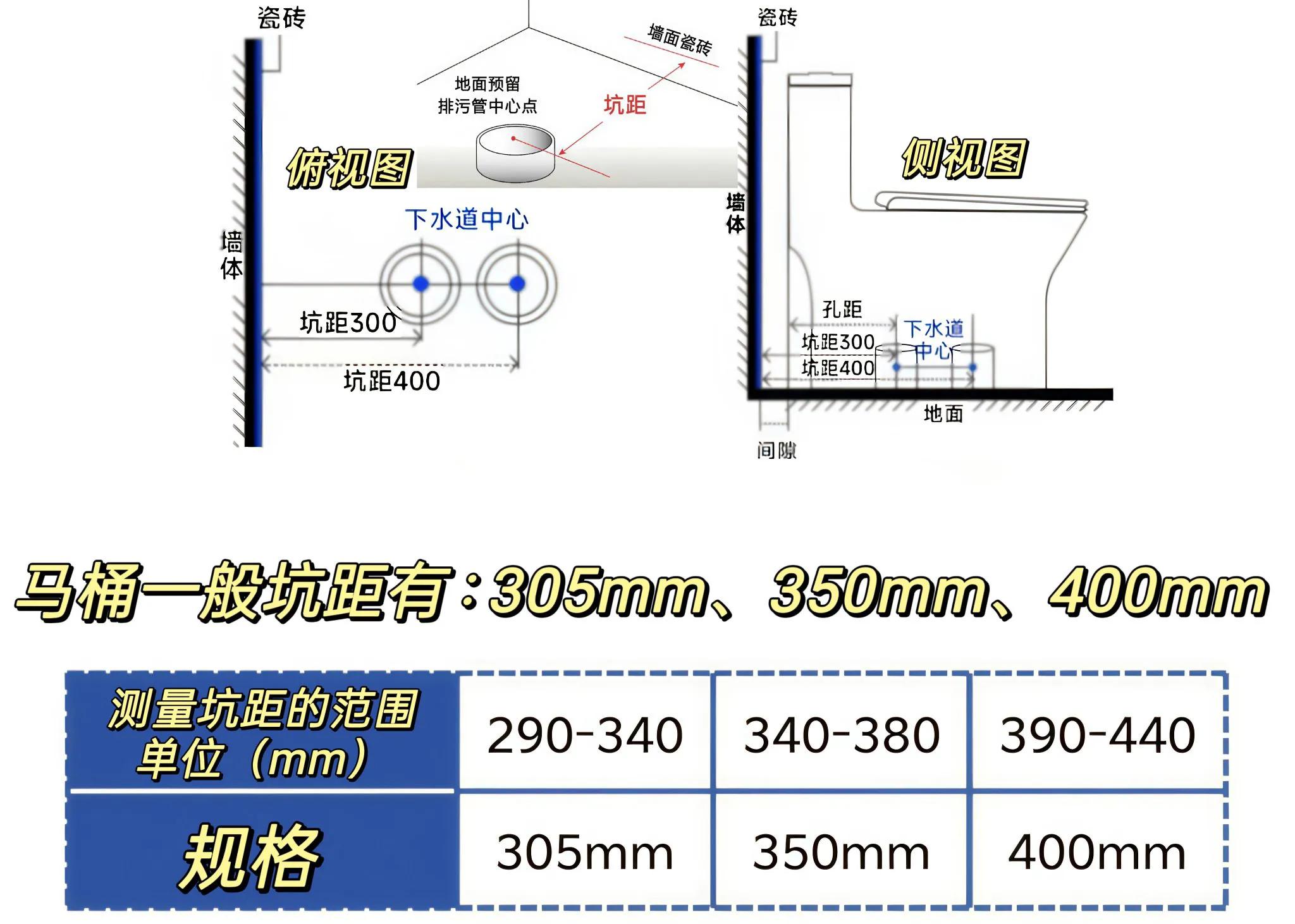 个人建议∶排污管中心距离到墙的距离坑距29~34cm选305mm,坑距34~38cm选350mm,坑距39~44cm选400mm坑距的马桶。