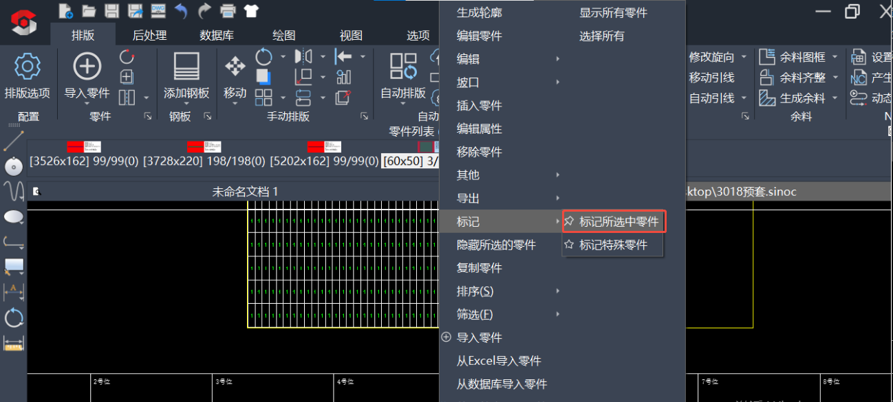 原先的操作方式(二)在SinoCAM智能套料软件中,还有一种快速定位所选零件的方法,那就是“标记所选中零件”功能。
