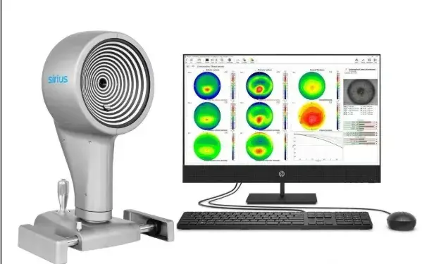 它像一台“全景扫描仪”,能快速、全面地扫描角膜的表面形态、厚度和曲率。它结合Scheimpflug成像和Placido环技术,提供角膜前、后表面的曲率、高度和厚度分布的三维数据。