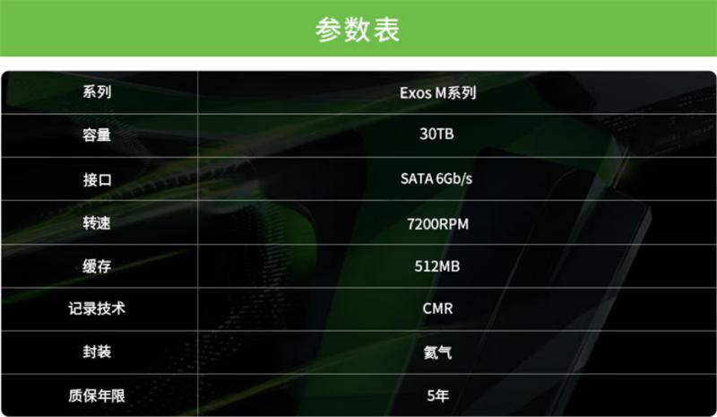 希捷银河Exos M 30TB硬盘详细参数如下: