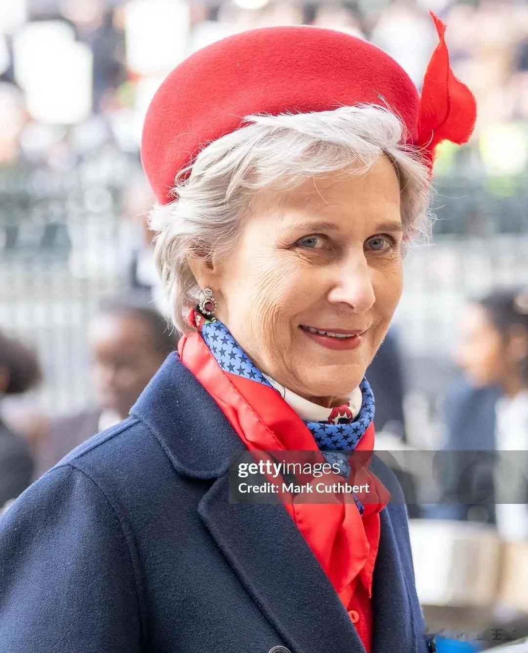 卡米拉王后一身红衣亮相,她佩戴了伊丽莎白王太后的三层珍珠项链,这身搭配整体看起来还是不错的,不过有些真实镜头没眼看,卡米拉满脸褶皱,尽显老态,整张脸都垮了,面相还有点“凶狠”。