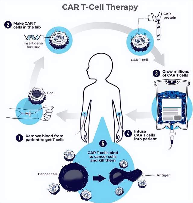 4.个性化治疗每位患者的CAR-T细胞都来自自身,避免了排斥反应,提高了一定的安全性。