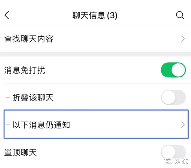 在该页面可以自定义开启群聊免打扰后还可以通知的消息类型,全部关闭的话,那么这个群聊的通知就会彻底免打扰。