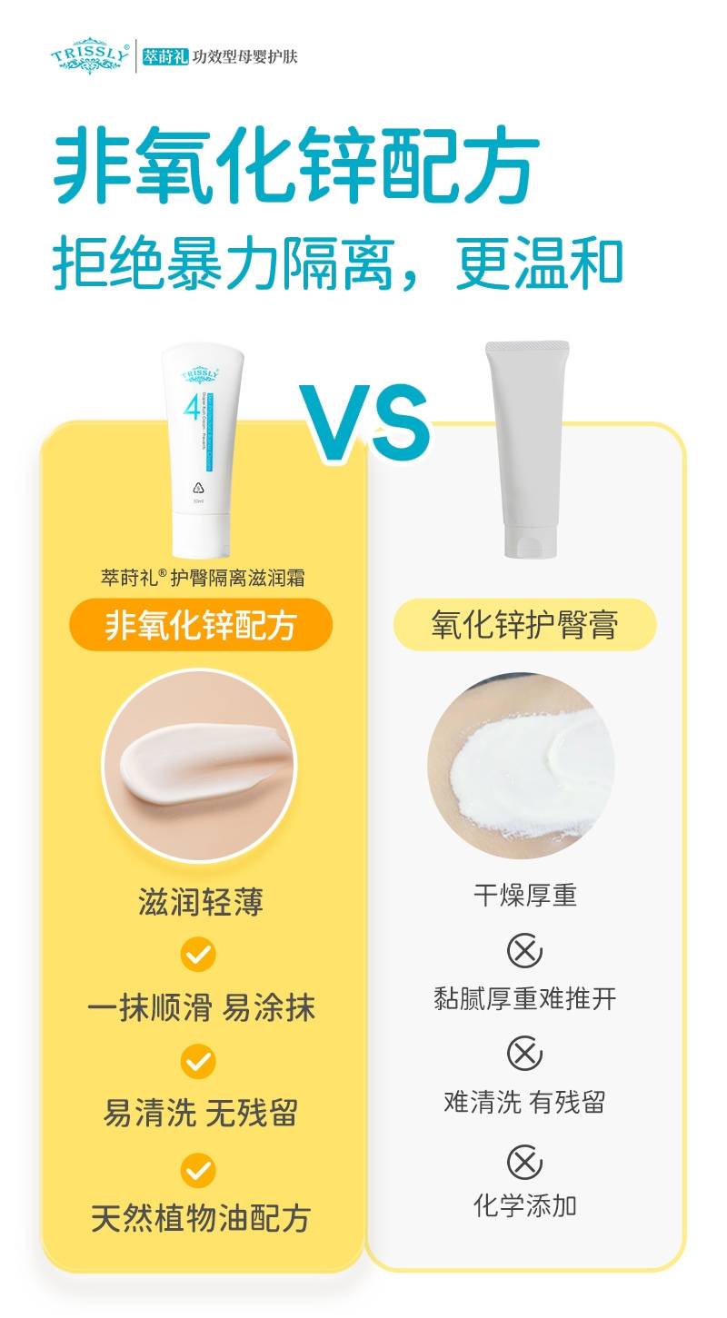 很多护臀霜质地厚重,含氧化锌,不适合天天用,长期涂抹容易闷肤、粘黏纸尿裤,反而影响透气。萃莳礼护臀霜专为日常护理设计,无氧化锌,质地清爽不油腻,上肤轻薄好推开,不会在屁屁上留下厚重膜感,也不容易蹭脏衣物。它可以在肌肤表面形成柔和的隔离层,有效缓冲尿便与纸尿裤摩擦带来的刺激,适合每天多次使用。
