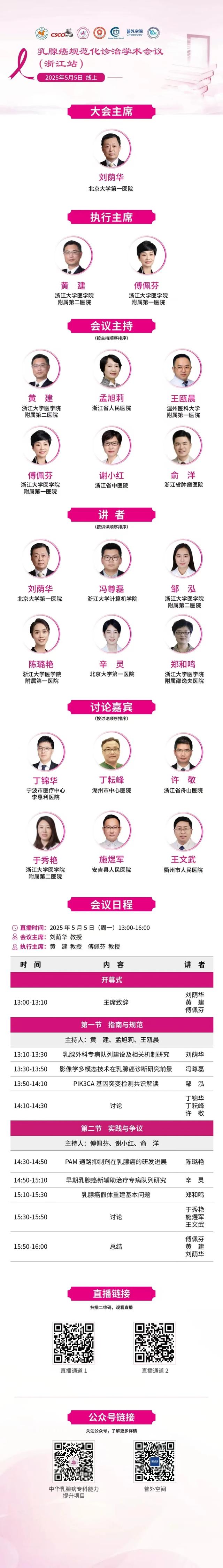 【今日直播】5月5日 13:00-16:00 乳腺癌规范化诊治学术会议(浙江站)