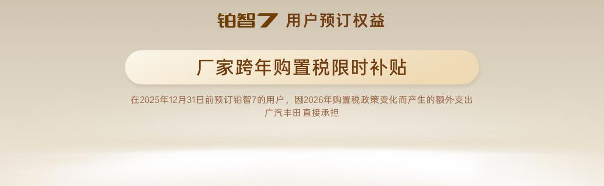 11月21日,广州国际车展开幕首日,丰田鸿蒙座舱豪华旗舰D级纯电轿车——铂智7迎来“开门鸿”,新车信息首次全量发布。同时,新车同步开启预定,并承诺凡是12月 31日前预定铂智7的用户,因2026年购置税政策变化而产生的额外支出,广汽丰田直接承担!
