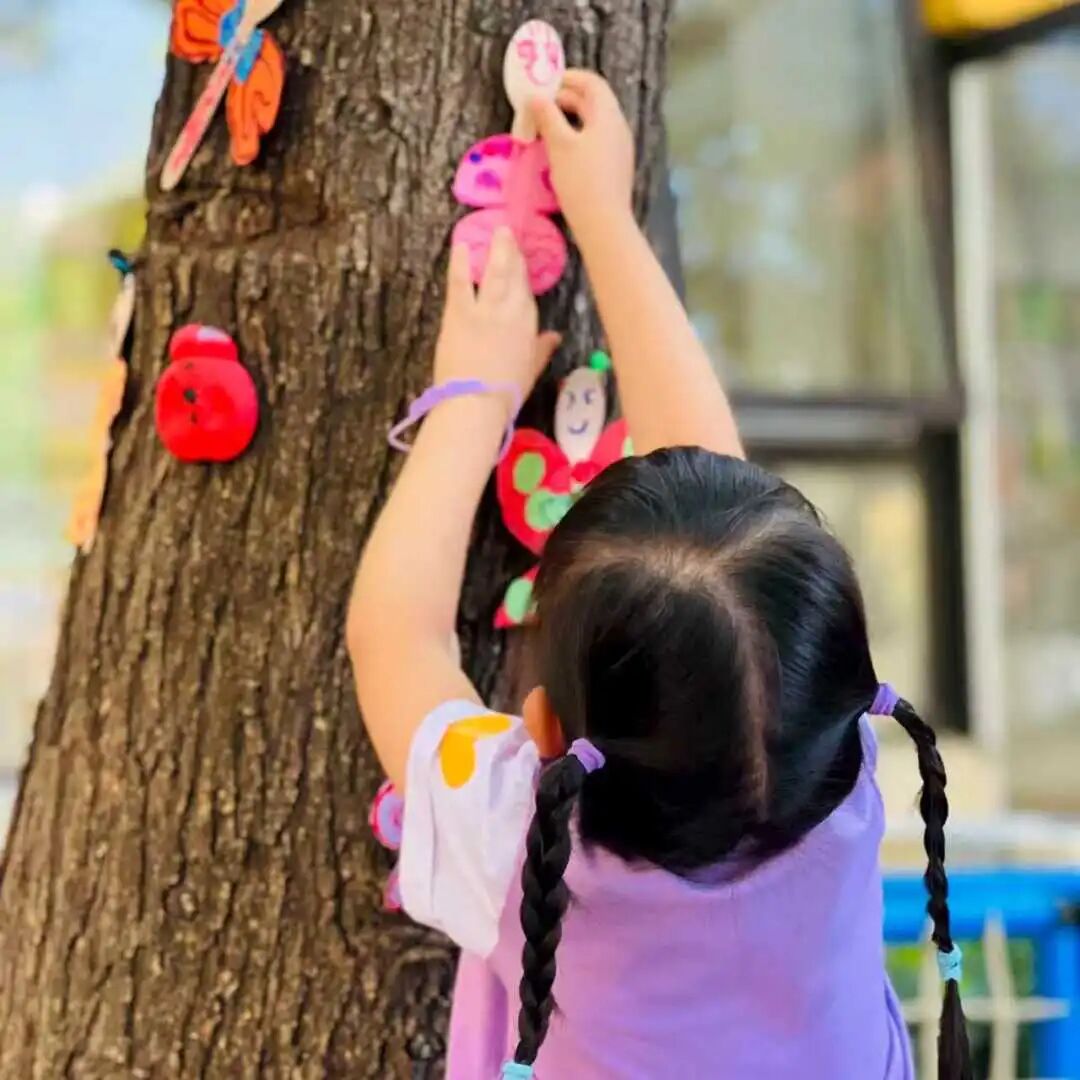 艺术源于生活,富力桃园幼儿园注重引导孩子从生活中汲取创作灵感,让自主创作更具生命力。如春天,和孩子观察花草树木的生长变化;夏天,一起感受水的流动与光影变化;秋天,收集落叶、果实,开展创作活动;冬天,记录下雪的场景、节日的氛围……同时,还将幼儿的自主游戏、日常交往、情绪体验等融入创作主题,让孩子有话可说、有感可发。