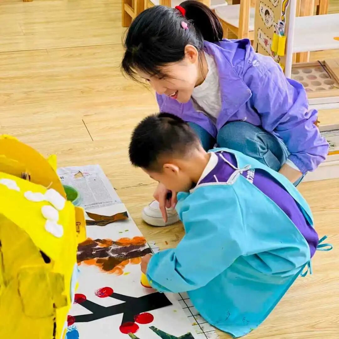 园所始终摒弃“模板化教”“标准化评价”的模式,坚持“不干预、不评判、重过程”的核心原则。当孩子拿起画笔,老师不会规定颜色,而是鼓励他们用自己喜欢的色彩表达感受;当孩子用废旧材料搭建作品,老师不会纠正“这像不像”,而是倾听他们心中的创意故事。