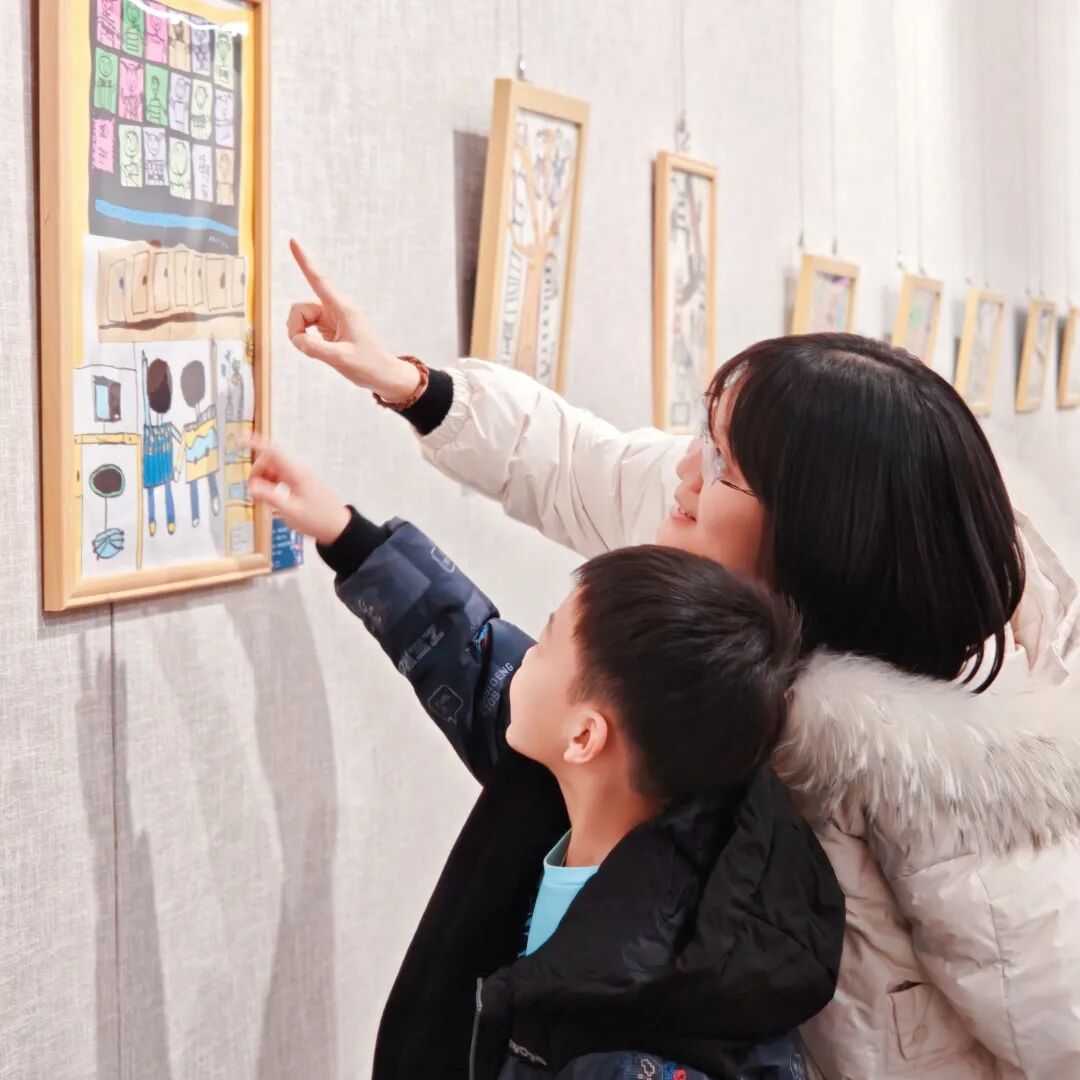 展览当天,一场充满爱与惊喜的艺术之约如期而至。获奖幼儿牵着家长的手,在指导老师们的陪伴下,一同走进布满自己作品的展览空间。孩子们的脸上洋溢着抑制不住的兴奋与骄傲。