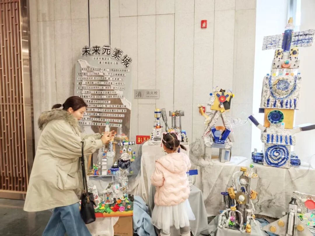 家长们在作品前驻足良久,一边认真倾听孩子的讲述、一边用手机记录下这珍贵的瞬间!