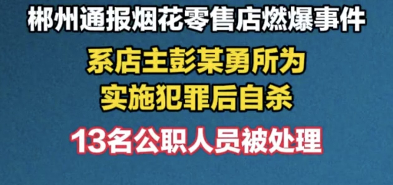 而这场悲剧,还牵扯出了当地一些公职人员的问题。彭某勇生前在群里不仅发了视频,还举报了多名公职人员。这一查,还真查出了问题。总共13名公职人员被处理,2个党组织被问责。其中比较典型的是郴州市应急管理局危化烟爆科科长贺某林,他在2024年春节前,竟然向自己管理的服务对象——也就是彭某勇,索要了价值5000元的烟花。虽然后来因为彭某勇在朋友圈吐槽,他把烟花退了,但这种事本身就踩了红线。