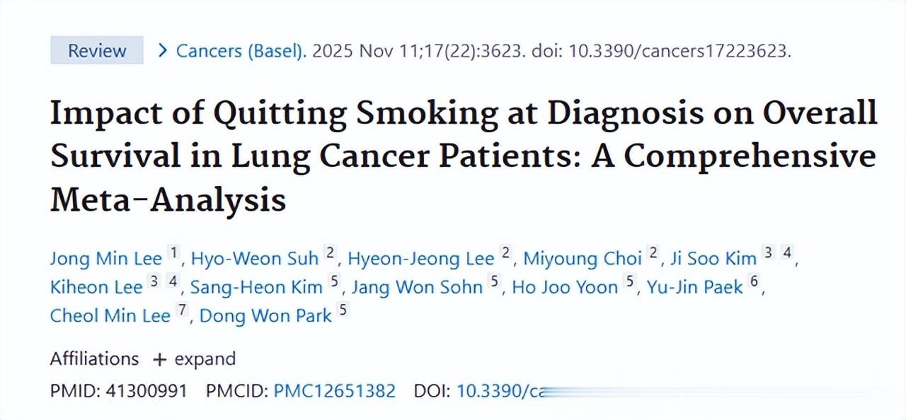 1、PMC.肺癌患者确诊时戒烟对总生存期的影响:一项综合荟萃分析.2025-11-11