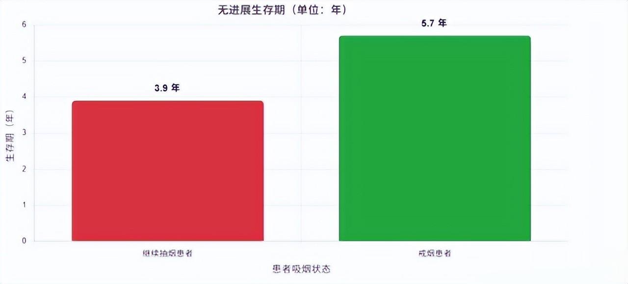 在《内科学年鉴》刊登的一项前瞻性队列研究显示,对早期非小细胞肺癌患者随访多年发现:继续抽烟患者的无进展生存期明显比戒烟者更短(约3.9年 vs 5.7年),而复发或转移事件发生频率也显著更高。这说明在同样接受治疗的前提下,烟草暴露会加快肿瘤从局部扩张到远处转移的速度。