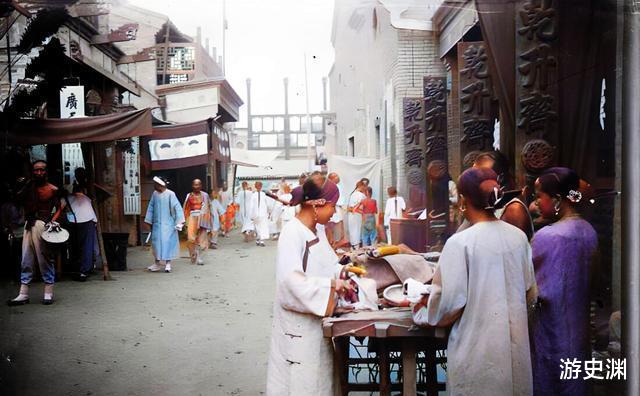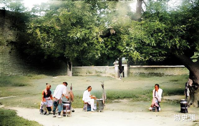 城墙根儿那块空地儿,成了几个剃头师傅的干活地儿。那些光膀子的大哥,顶着个金钱鼠尾发型,为了方便剃头,都把辫子在脑瓜顶上盘成了个小啾啾。清朝时候的男人们,弄头发可真够折腾的,要是隔几天不剃,脑门上就长出一层短短的发茬,看着那叫一个邋遢。
