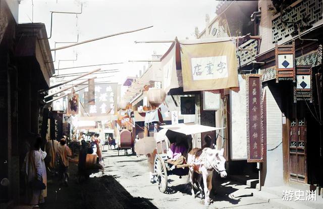 大栅栏边上的琉璃厂街上,那窄窄的街道两旁,全是卖笔墨纸砚还有书画的铺子。大热天的,大家都爱往树荫下、凉快的那边走。坐马车的女士们受不了车厢里的闷热,干脆就挪到了车前面的遮阳棚下头坐着。只有那些撑着阳伞的,才敢在火辣辣的太阳下大摇大摆地走。