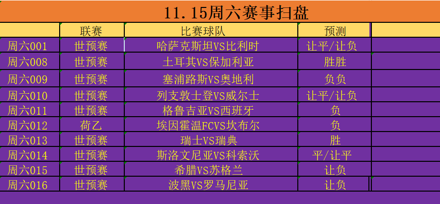 周六 001 世欧预:哈萨克斯坦VS比利时