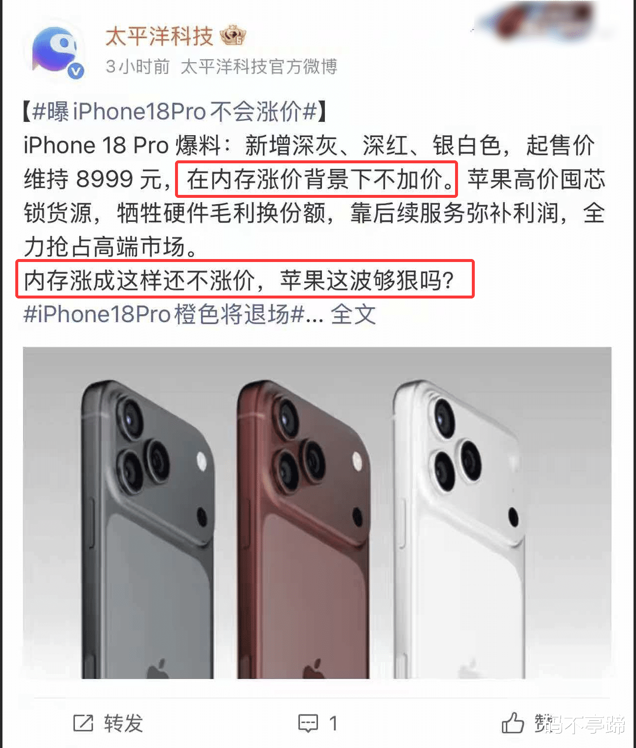 据最新消息,苹果公司即将发布的iPhone 18系列手机将不涨价,这与“全球内存涨价、国产手机除华为外都在涨价”形成了鲜明的对比。一个问题立刻闪在我们的面前:为什么国产手机都在涨价,而苹果手机却不涨价呢?