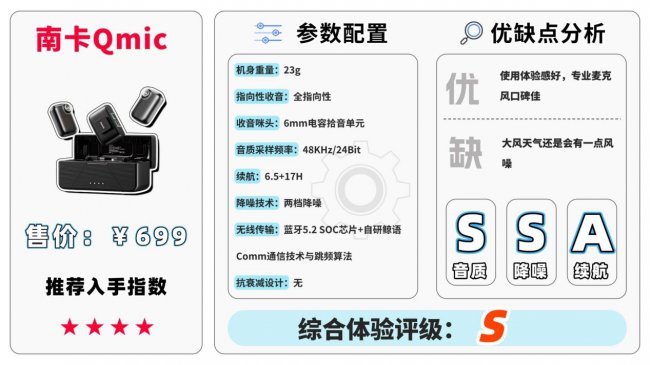 第六款:南 卡Qmic无线领夹麦克风(一拖二售价:699元)