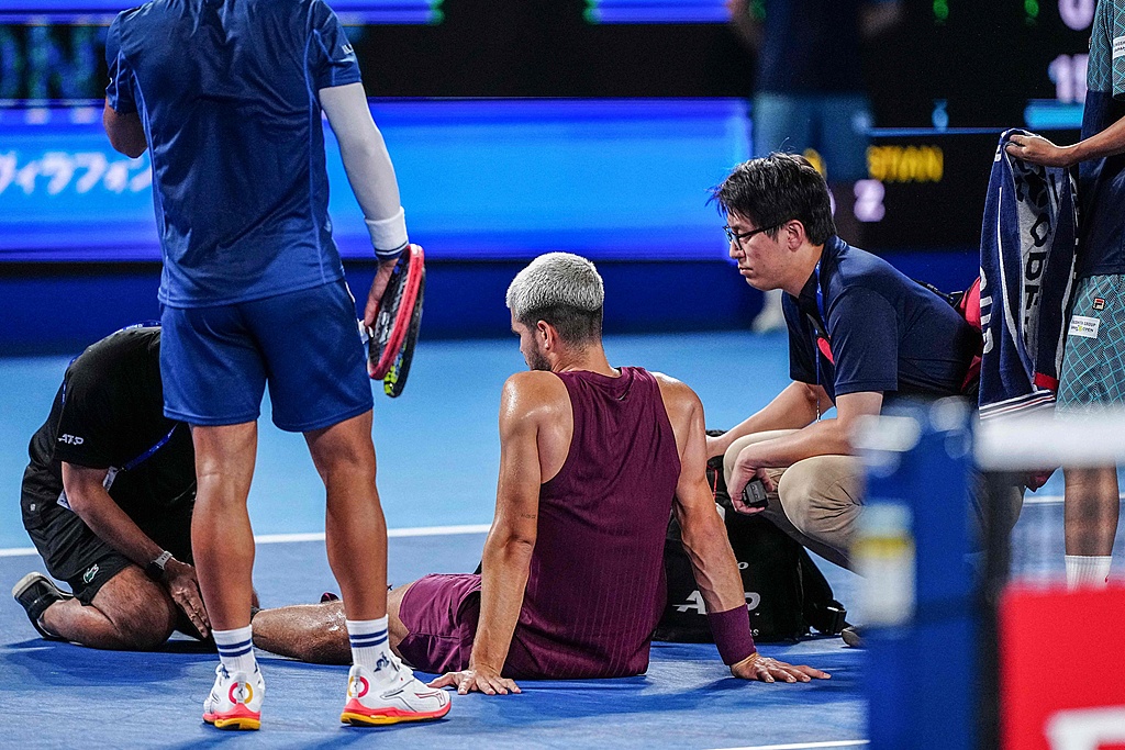 男单世界第一阿尔卡拉斯正在东京参加比赛,但是在今天的首场比赛中,阿尔卡拉斯就受伤了,并差点因此退赛。