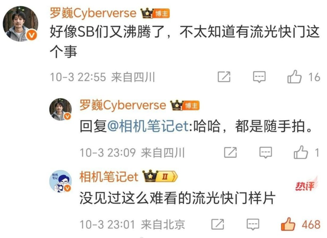 面对着网友的批评,罗巍并没有接受,反而开启了辱骂网友,表示好像xx们又沸腾了,不太知道流光快门这个事。