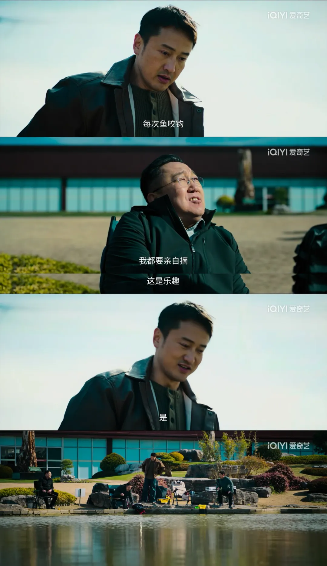 刘天也为了从乔德福(句号 饰)手里拿到诚建集团合同,通过开发区管委会主任的搭桥,终于组成了一场钓鱼局。在塘边,乔德福惜字如金,看似句句都在说钓鱼的事,实则条条都是对刘天也的警告和暗示。刘天也同样没让一句话掉地上。最后,和主任对眼神的确认细节,更是有着“点到为止”的微妙感。