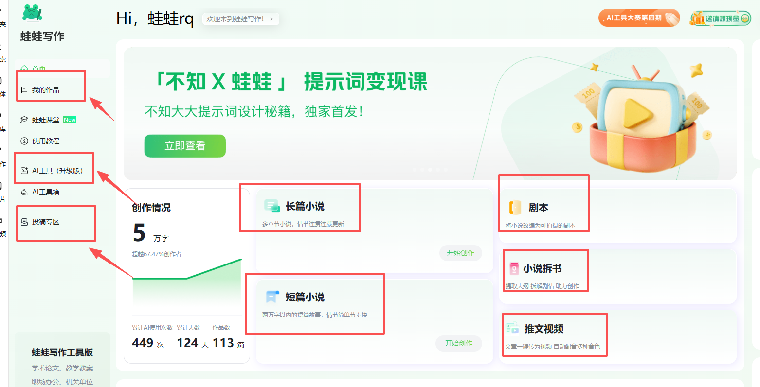 蛙蛙写作:全链路的AI写作工具体验蛙蛙写作是杭州引力智航科技有限公司出品的,可以写小说和转化成AI 漫剧。