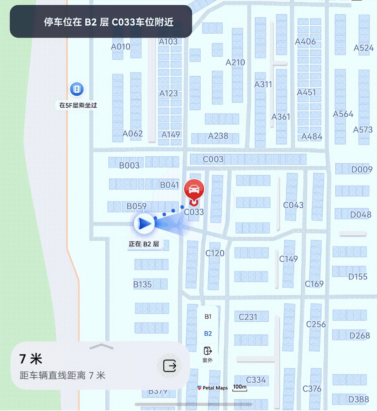直到后来发现我的华为Mate X7自带HarmonyOS 6花瓣地图独家功能精准寻车,才治好了我的找车困难症。不管是周末带娃去游乐场撒欢,跟朋友聚餐看电影,还是逛网红景点、商圈,只要在停车场正常熄火下车,负一屏就会自动生成一张停车卡片,标好停车的楼层、附近的车位号。不用我额外下载APP,也不用每次停车拍照记录。甚至有些地库还有简易位置示意图,属实是懒人狂喜。