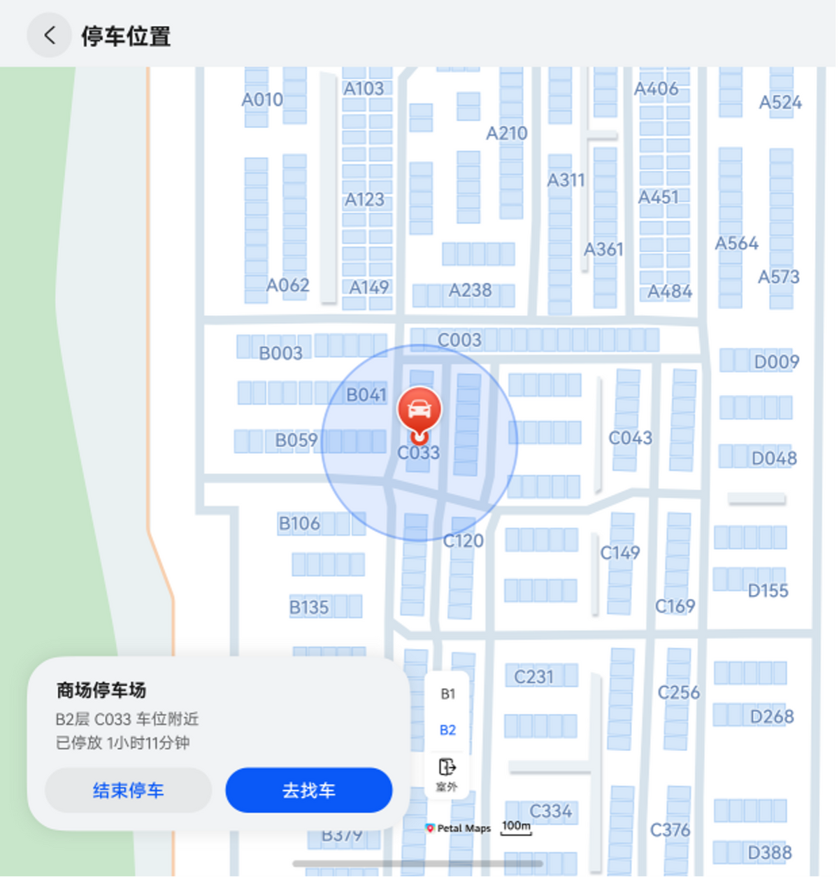 但花瓣地图用的是AI感知和空间定位技术,再结合车辆行驶的传感器数据做位置校准,没GPS信号照样能精准锁定停车楼层和位置。目前全国300多座城市,超2万家主流热门停车场都已支持,像大型购物中心、热门商圈等高频停车场所都包含在内。
